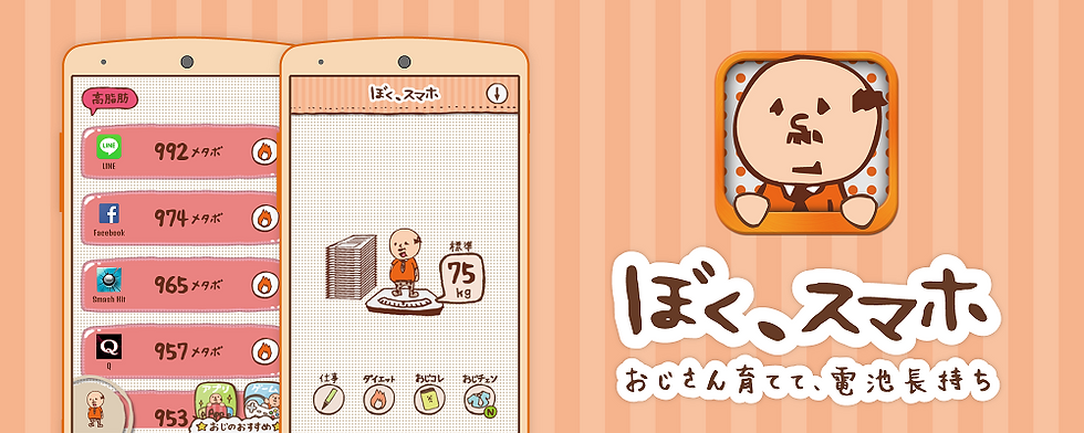 スマートフォン端末を管理するアプリって他にもいっぱいあるんですが、僕らのはすごくかわいいおじさんのキャラクターを使っていて、アプリを入れるとおじさんが太っちゃうっていう仕様にして、アンインストールとかタスクキラーとか、難しい言葉を使わずにわかりやすく伝わるようにしました。